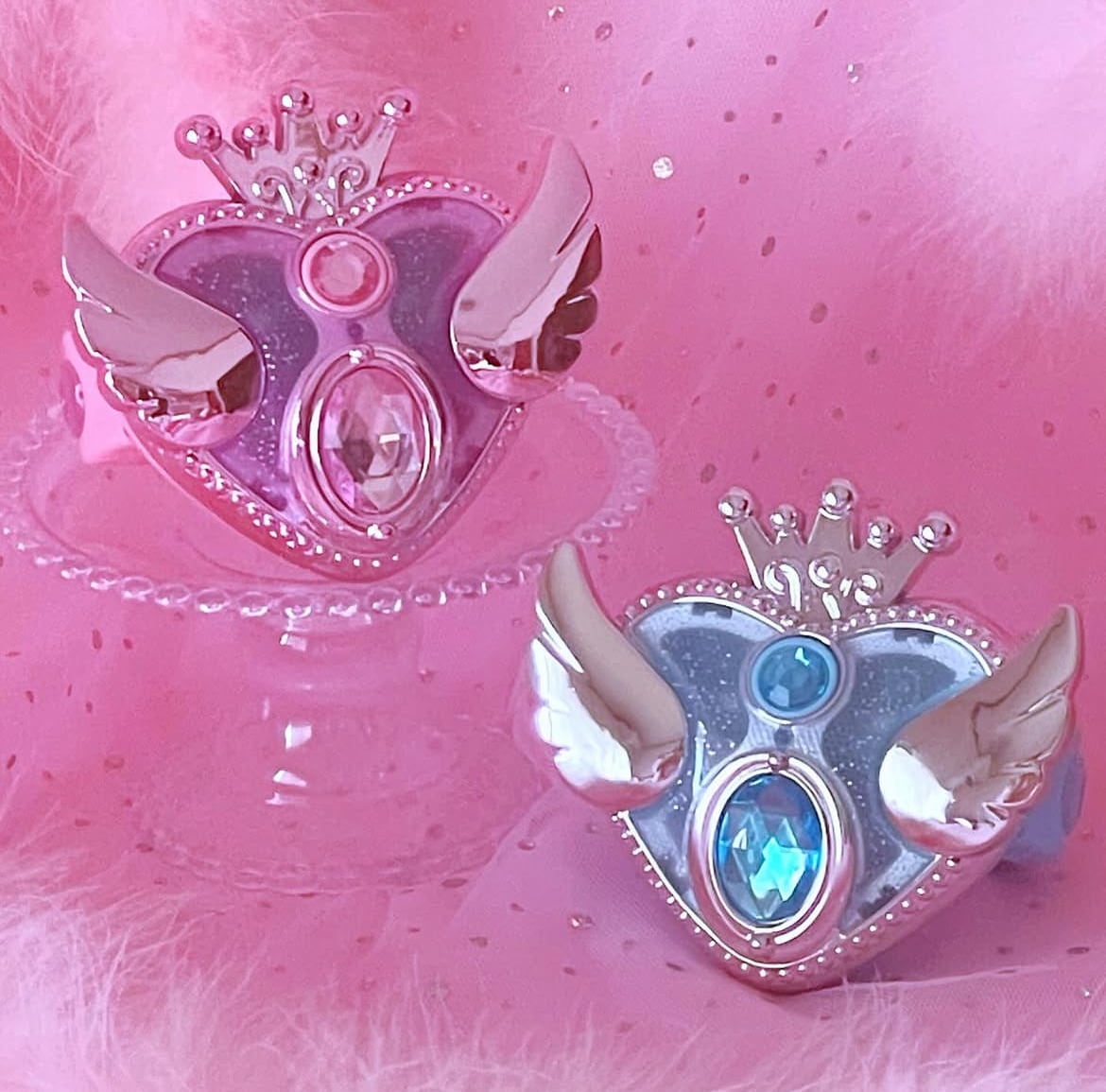 王冠や羽根、ハートの縁部分にはメタリックの